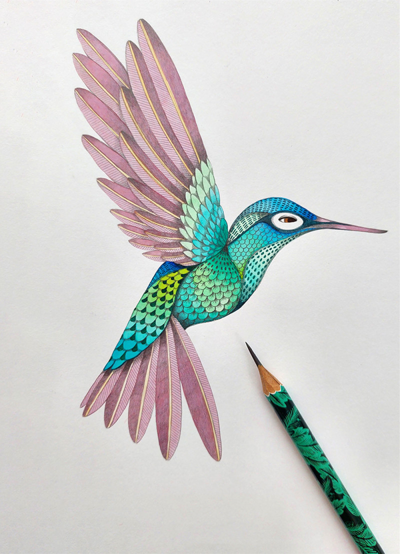 Ilustración MARTÍN PESCADOR de la serie Pájaros.