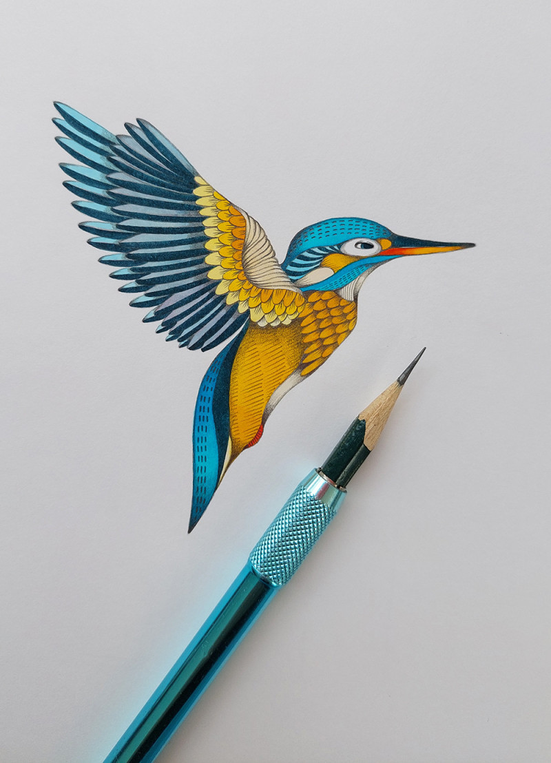 Ilustración MARTÍN PESCADOR de la serie Pájaros.